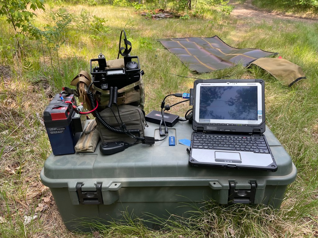 Luckily, I knew AFD was in the planning before I departed and so was able to pack the gear I thought I would need. For this outing I took my FT-857D and End-Fed Halfwave (EFHW) antenna kit. For power, I took a supplemental 23AH LiFePO4 battery to augment the 10AH battery packed with the radio. Additionally, I brought a 100W Powerfilm solar panel. Past experience with this combo gave me confidence that I would be able to operate off-grid all weekend if needed. Lastly, I had 2x CF-20 Toughbooks with me as I was in the process of setting up a new one when I left home and wanted to keep working on it on the road. This would prove fortuitous as we shall see later.